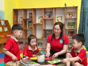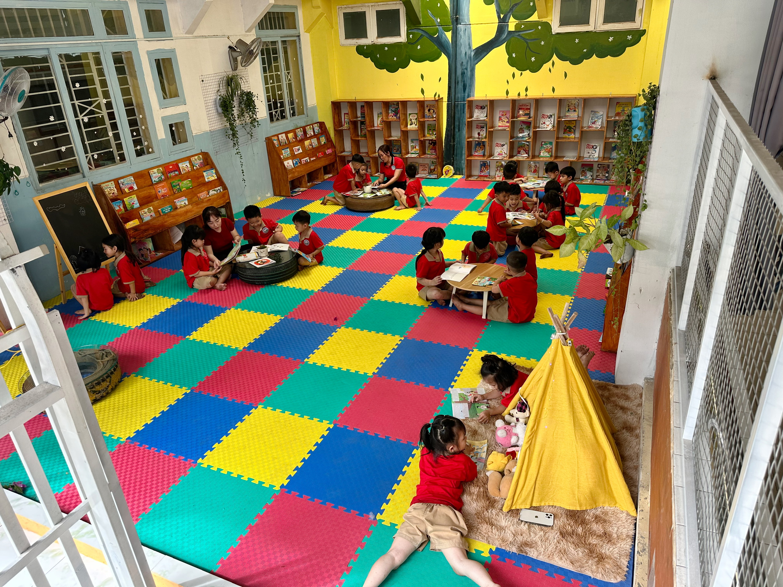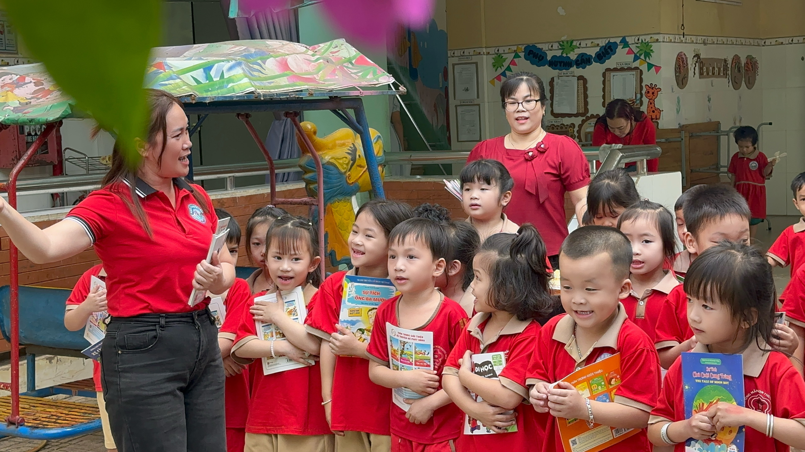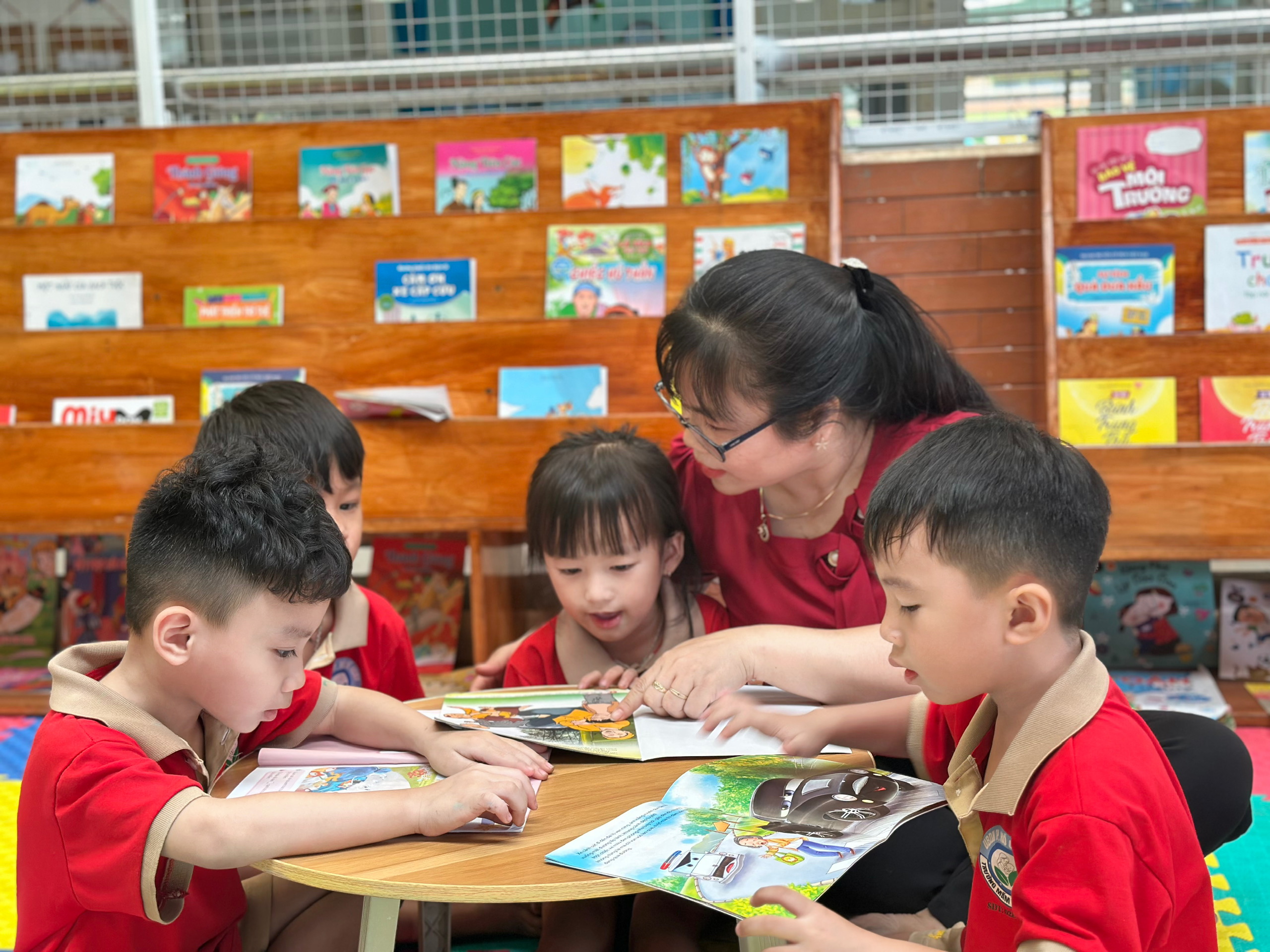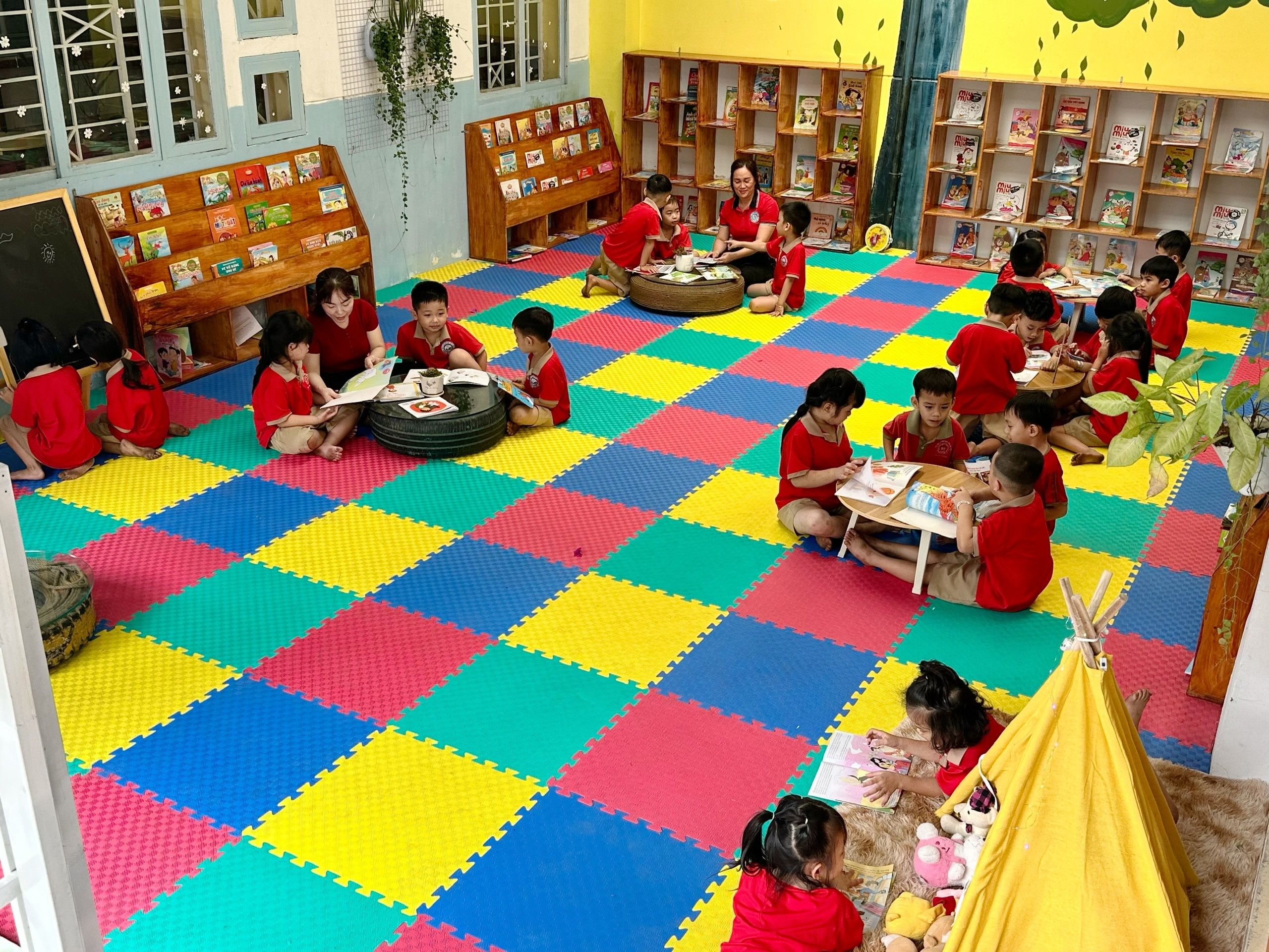Hoạt động làm quen với sách tạo góc thư viện trường